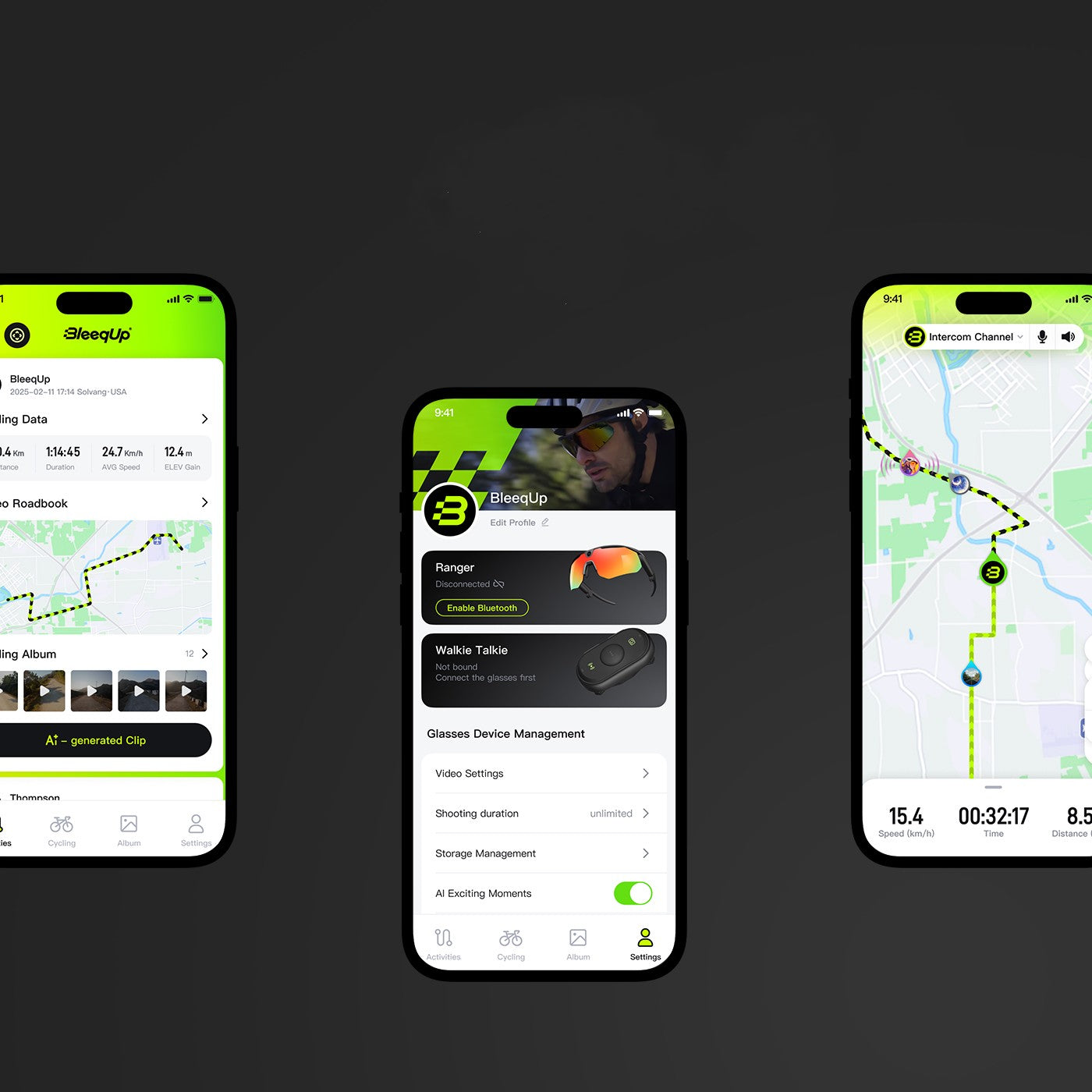 The BleeqUp App brings AI video editing, group intercom, GPS, pace tracking, and health data integration into one system—continuously evolving through OTA updates to extend your glasses beyond hardware.